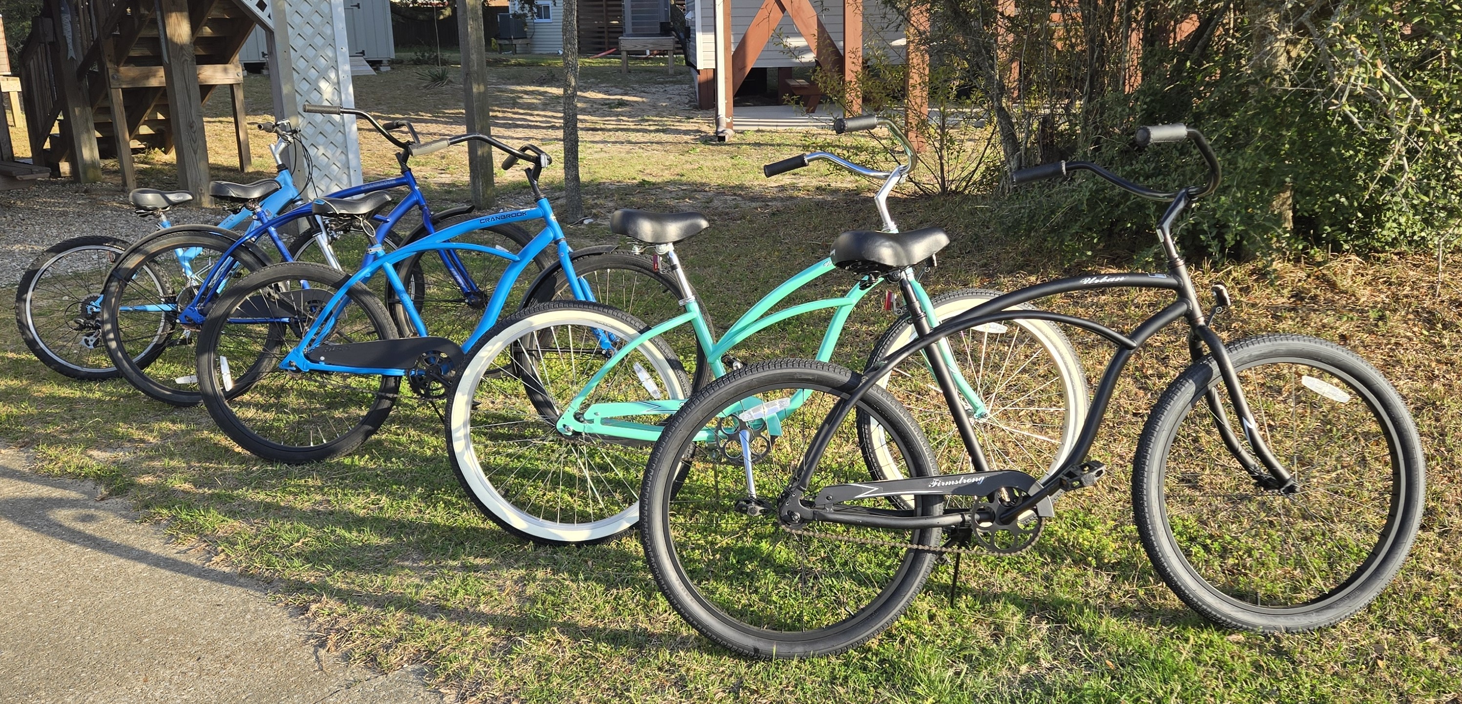 Four Beach Cruisers and a youth Mountain Bike are available for a family bike ride along the bay drive bike trail!